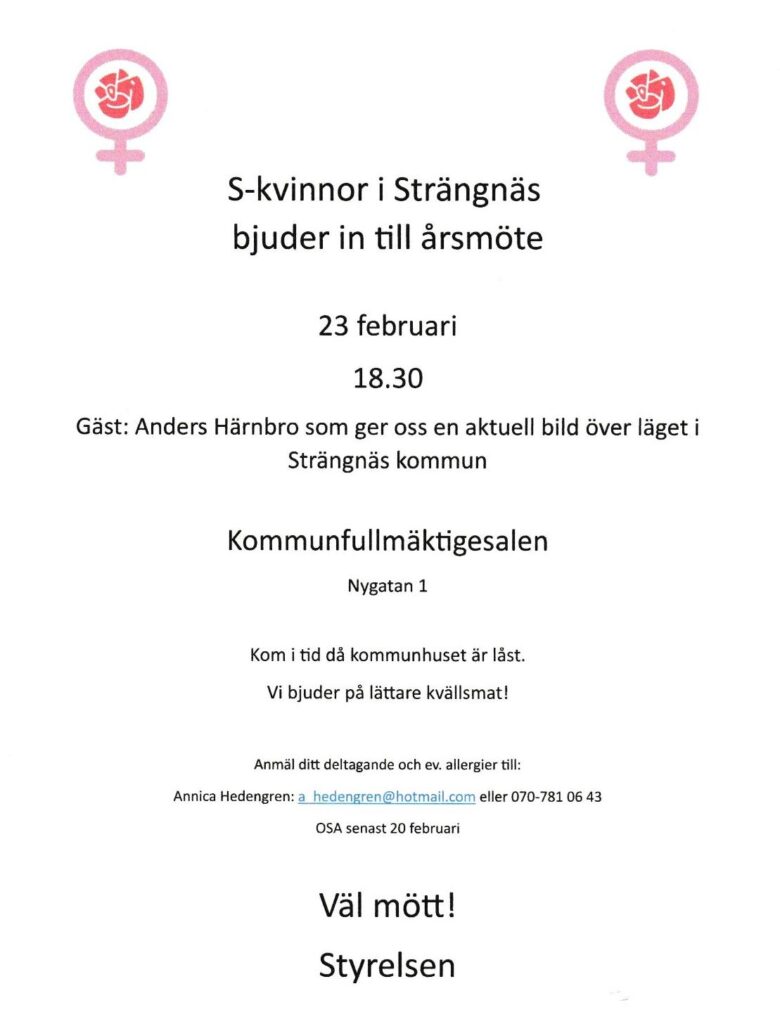 Kontakt till s-kvinnor i Strängnäs. Skriv ett mail till jennie.larsson76@gmail.com